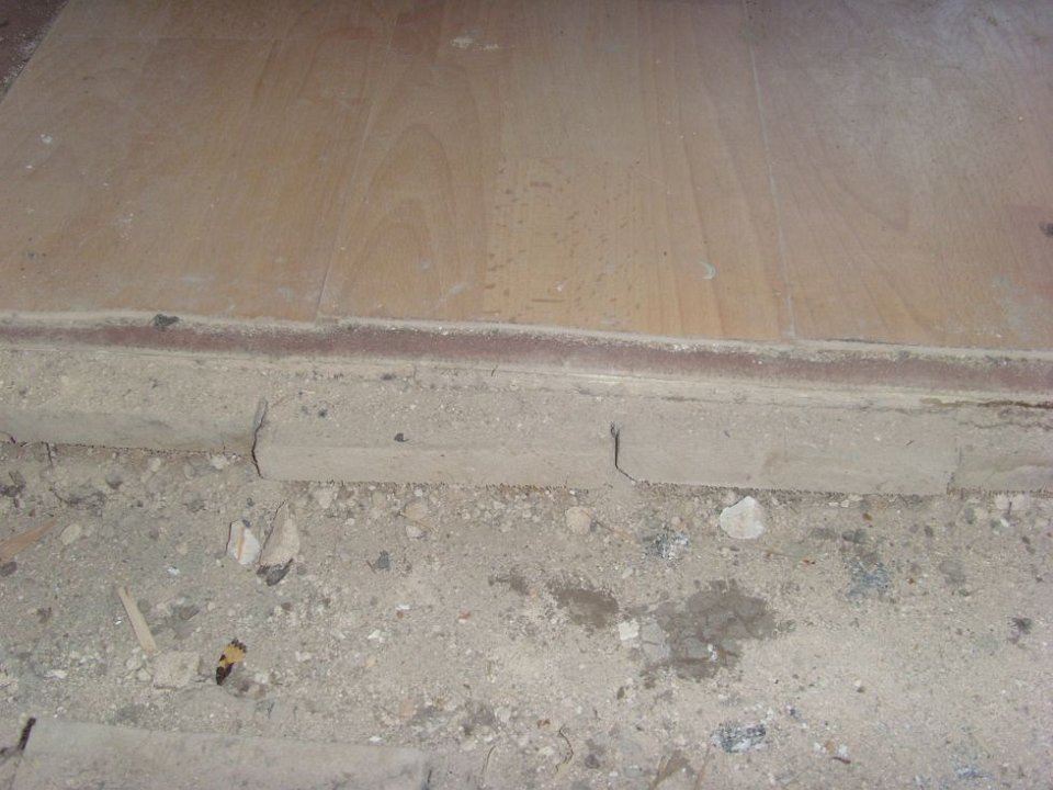 4 Laminat, Teppichboden, Spanplatte und dann die Dielen auf Sand gelagert |