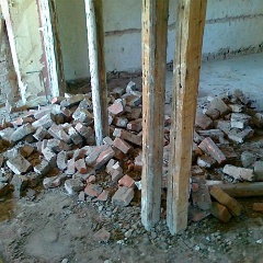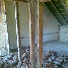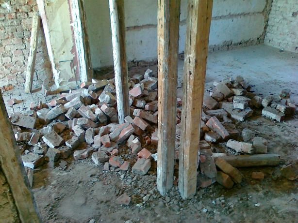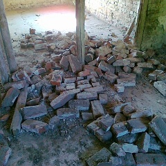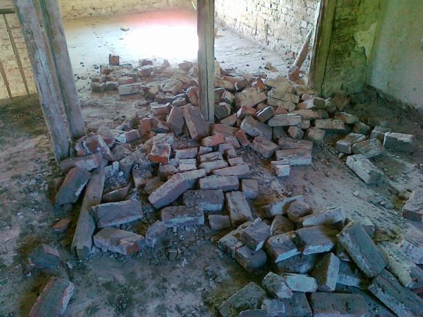 8 Erste Ergebnisse beim Ent-Mörteln der Ziegelsteien aus der abgerissenen Mauer |