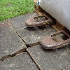 6 Bis zur Garage ging es mit dem Stapler, jetzt in Handarbeit weiter. |