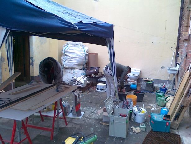 11 Heute am 5.12. war Großalarm angesagt, alle Gewerke kamen angerauscht, Trockenbauer, Schreiner, Fliesenleger, größtenteils unangemeldet.