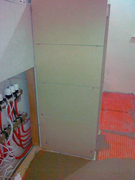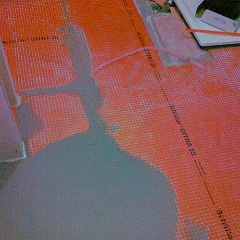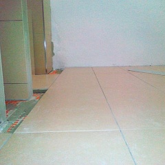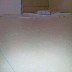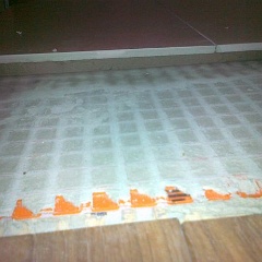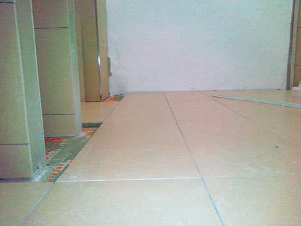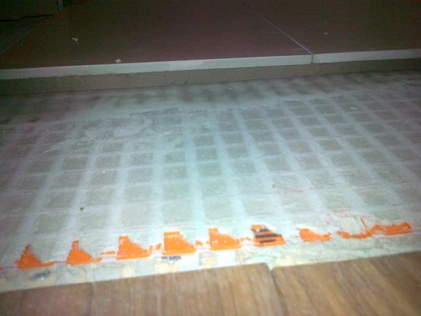 15 Die Entkopplungsmatten und die Ausgleichsmasse als Grundlage für die Bodenfliesen wurden in der Nacht auch noch aufgebracht.