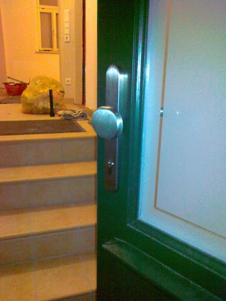 12 Endlich ist die in Italien gefertigte Haustür-Drückergarnitur da.