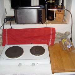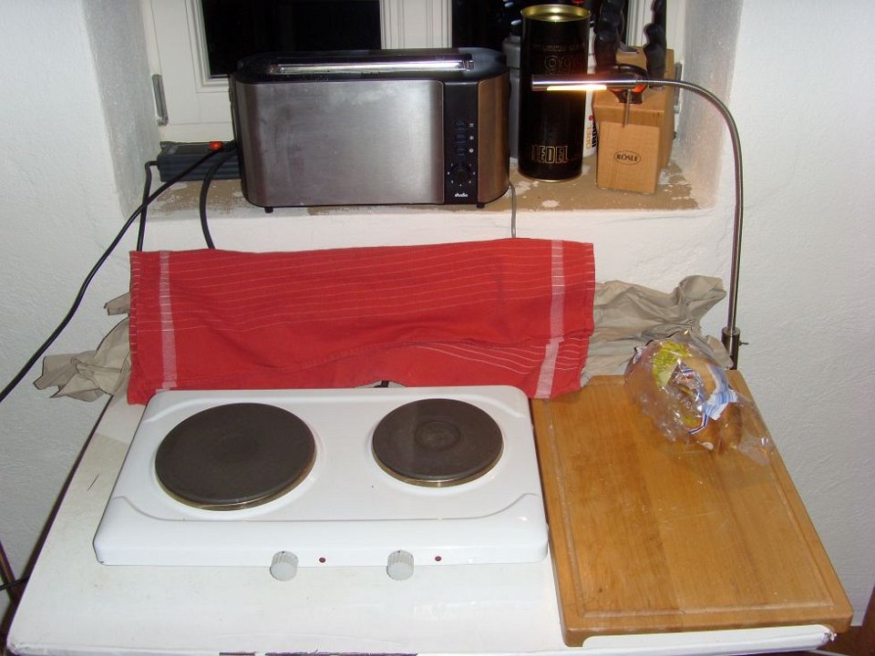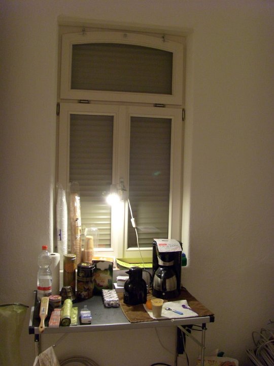 65 Das Provisorium mal für die nächsten Tage, ja, eine Küche, genau.