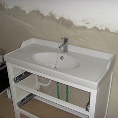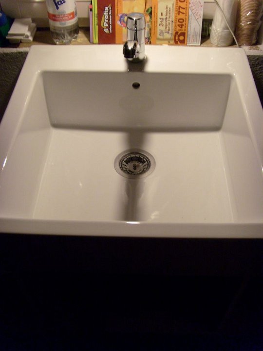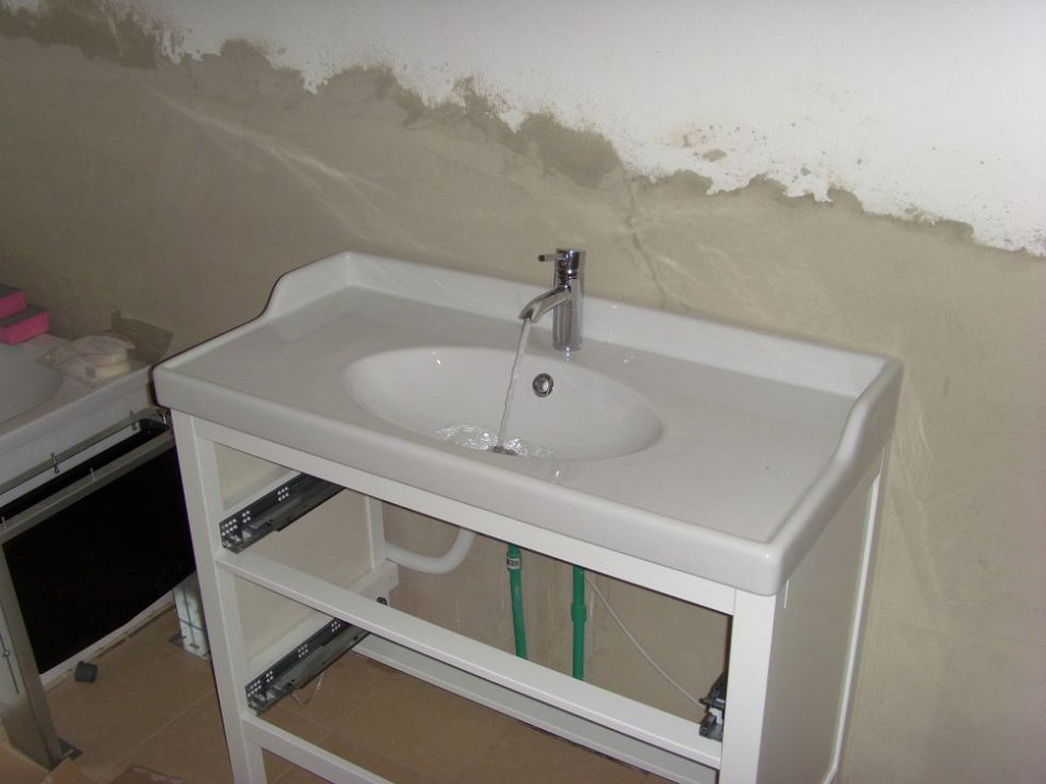 37 Es läuft, unser IKEA Waschbecken mit KLUDI Armatur, die Schubladen fehlen noch.