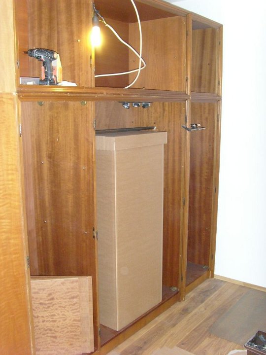 48 Die alten Schränke aufgebaut, ausgerichtet und verschraubt mit Türen.