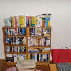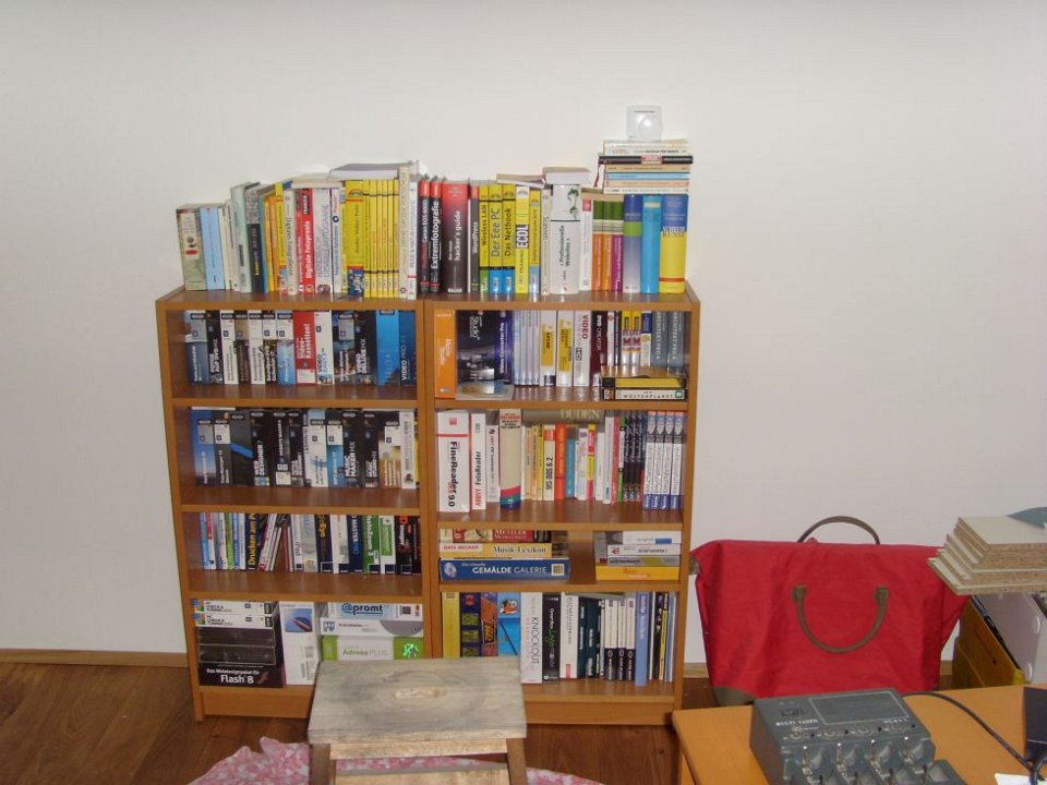 45 Das erste (überfüllte) Regal im temporären Arbeitszimmer.