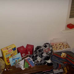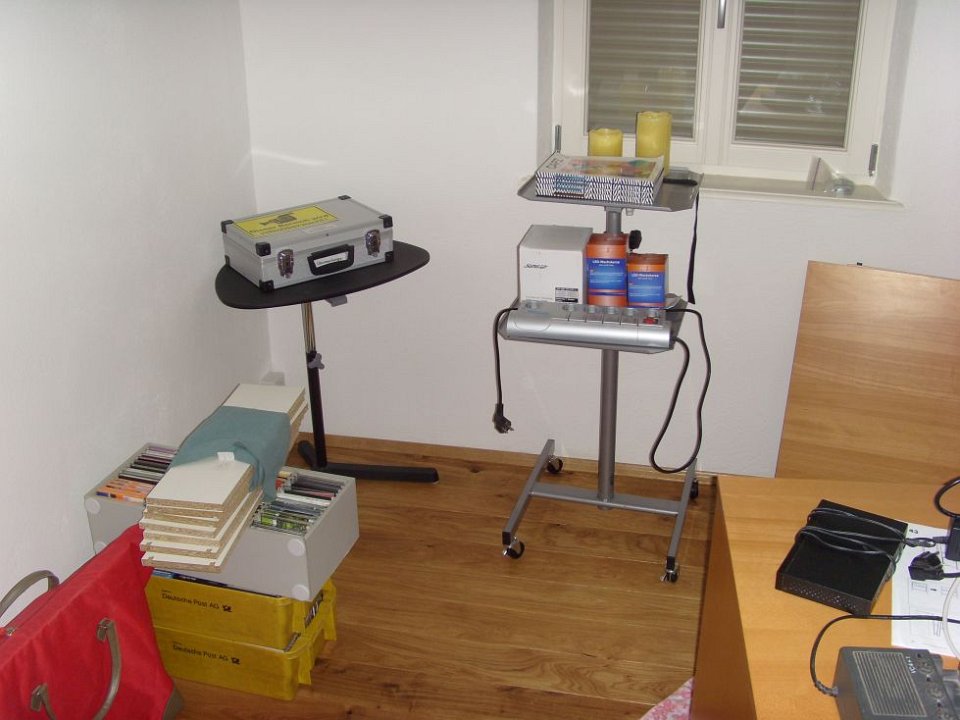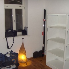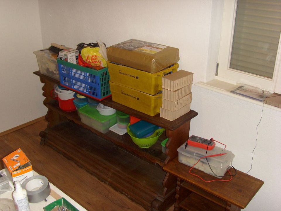 76 Alexanders "Arbeitsgeräte" sind auch da, die müssen erst einmal im Gästezimmer mit WC bleiben.