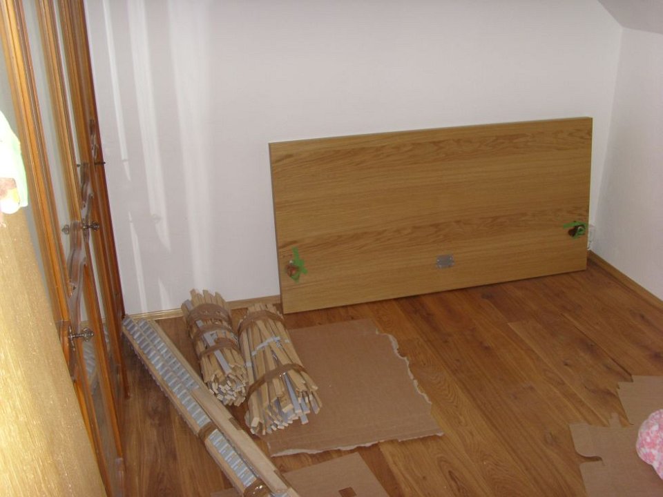 87 Die Lattenroste (rechts) sind auch schon montiert.