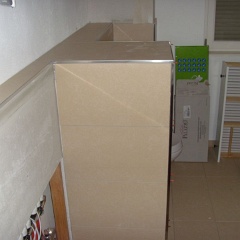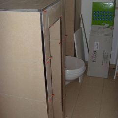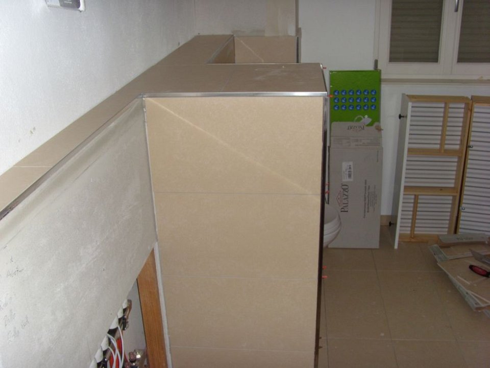7 Nun endlich auch die ersten Fliesen an der Wand im Bad.