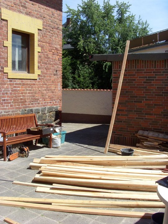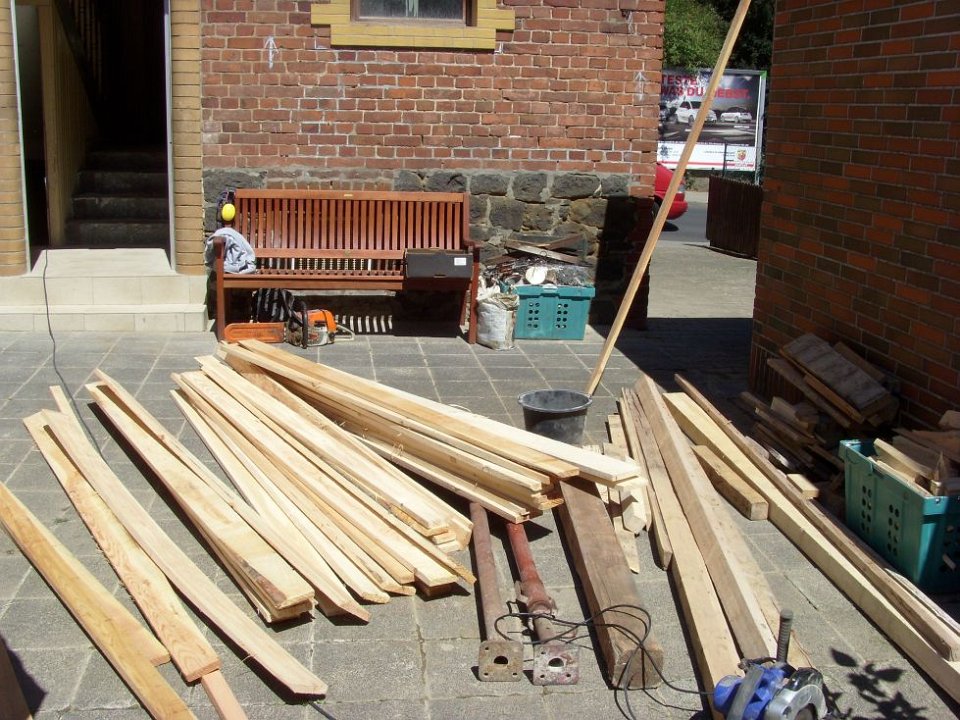 9 Nach einer Woche Stopp, haben wir wieder angefangen, Rainer brachte das Holz mit und los geht`s. |