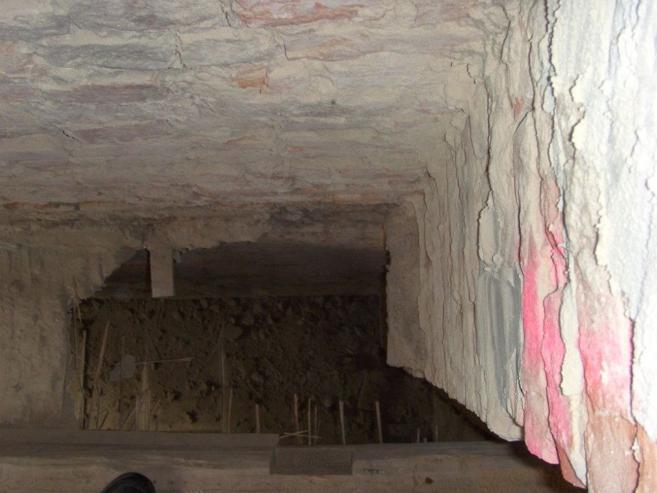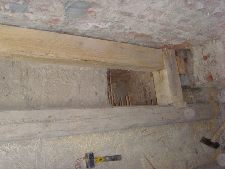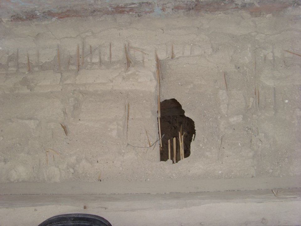 10 Tragen kann das nichts mehr, nur das Schilfrohr und der Kuhfellkalkputz von oben. |