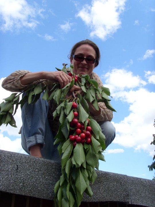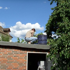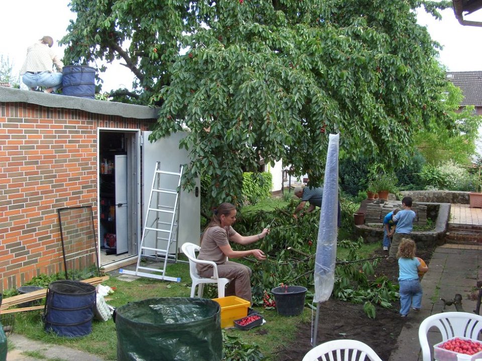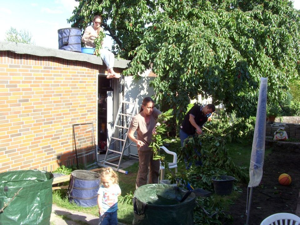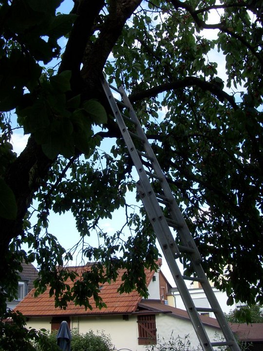 1 Ulla kam aus Bad Hersfeld zur Kirschenernte und Schwupps war sie auf dem Garagendach