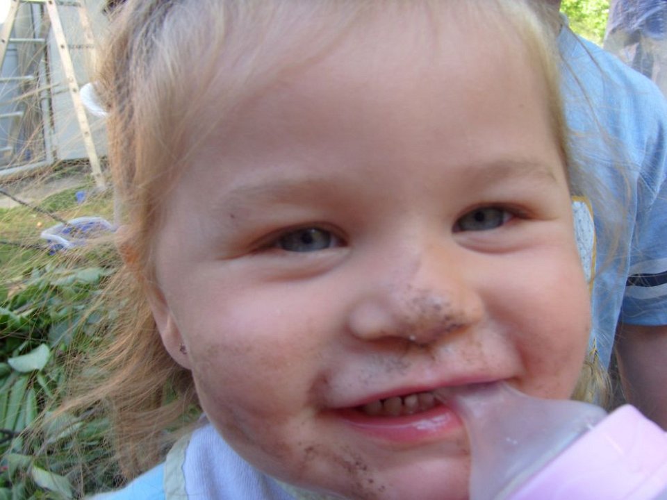 24 Cheyenne mit Erde, Baumrinde und Nuckelflasche im Gesicht.