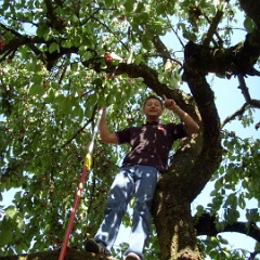 6 Nachbar Laupus beteiligt sich am Baumschnitt, schließlich muß einer von außen die Richtung angeben.