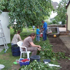 35 Das müssten rund 35 bis 40 kg Kirschen sein, das ist aber nur die Hälfte von diesem Tag, die anderen haben bereits die fleißigen Helfer mitgenommen.