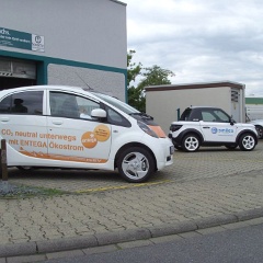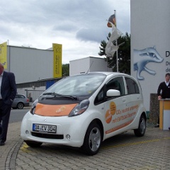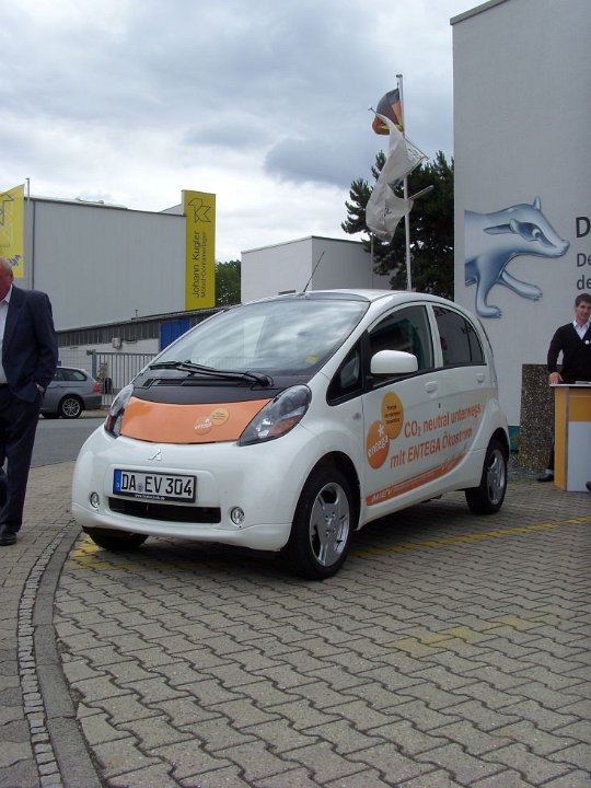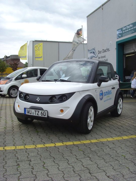 2 Zwei Fahrzeuge mit elektrischem Antrieb, ein italienischer Tazzari und dieser Mitsubishi.