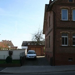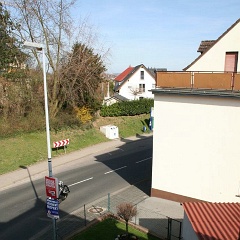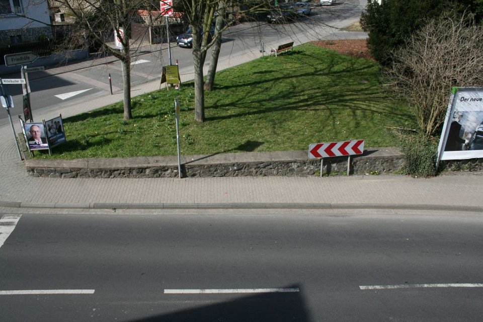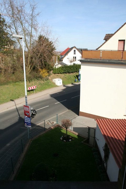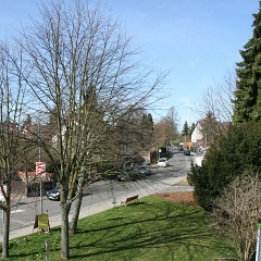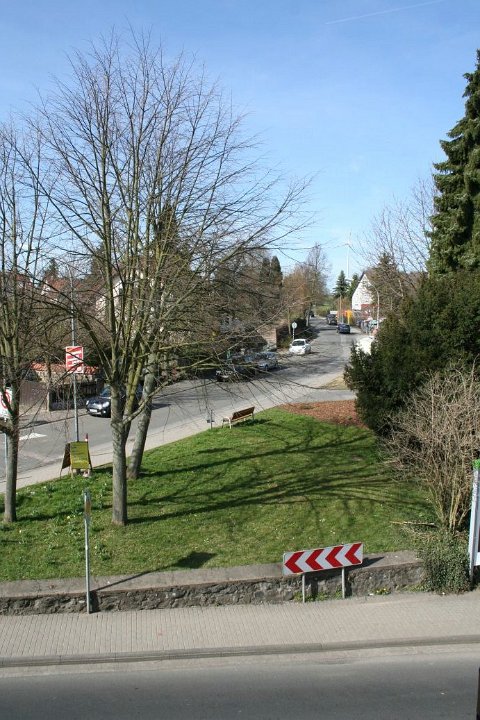44 Blick nach Norden aus dem Obergeschoß, nicht zu sehen, geradeaus der alte Friedhof, rechts das Evang. Gemeindhaus, eine Protz-Villa |