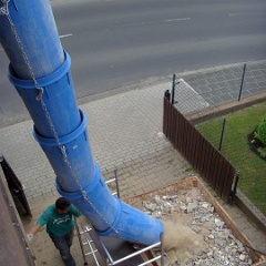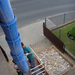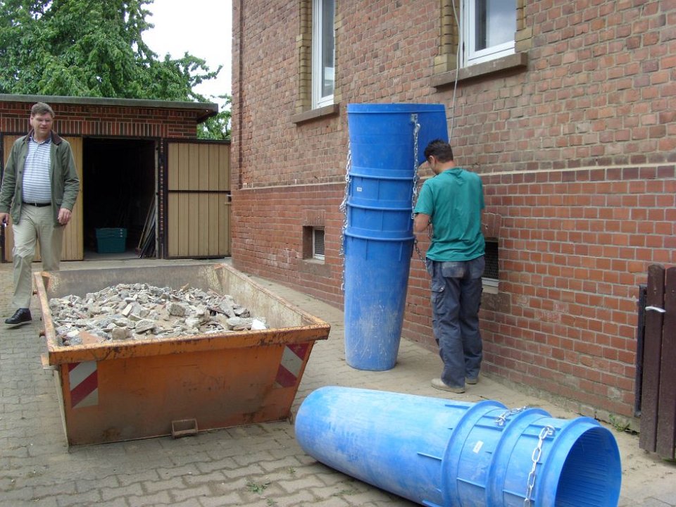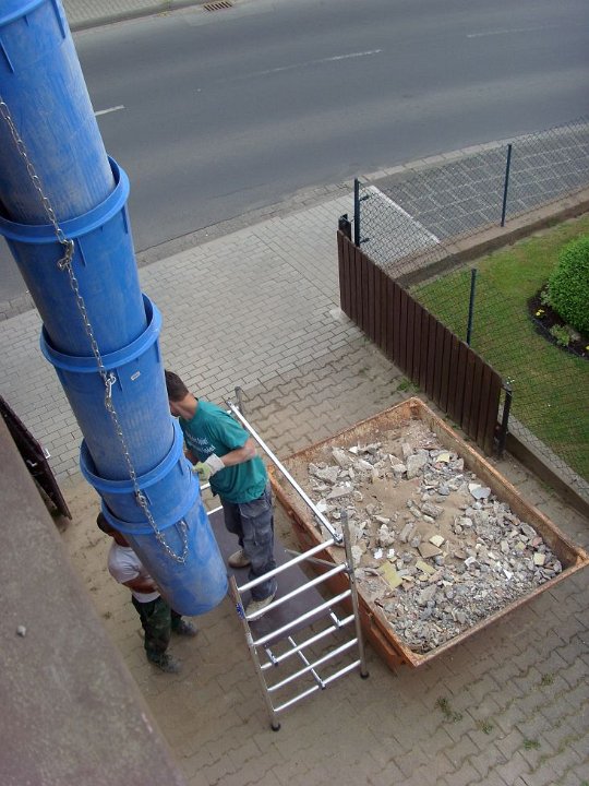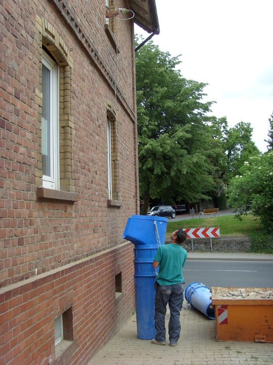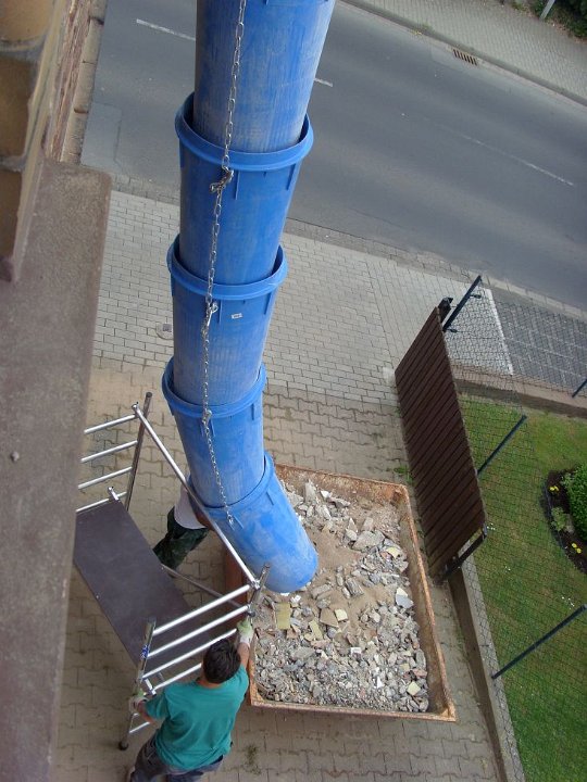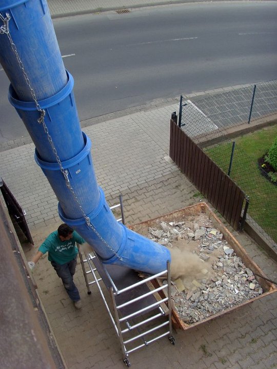 Damit wir nicht Eimerchen schleppen müssen, die Schuttrutsche