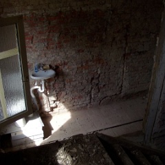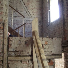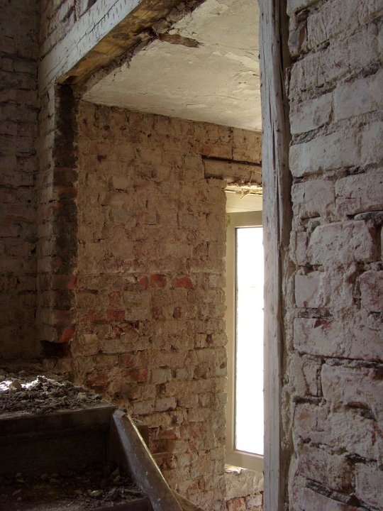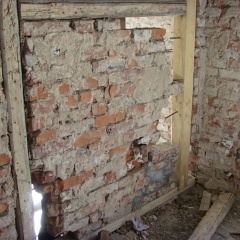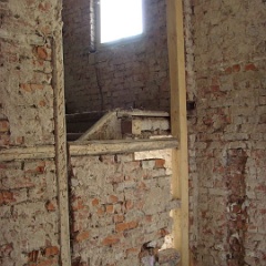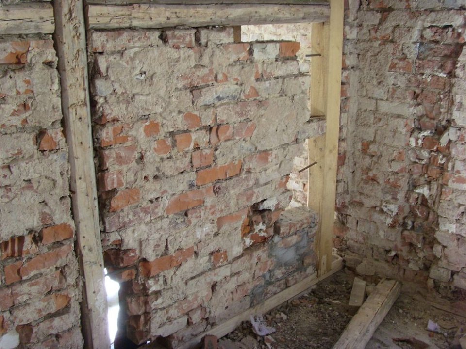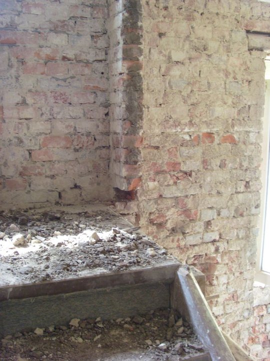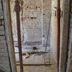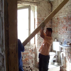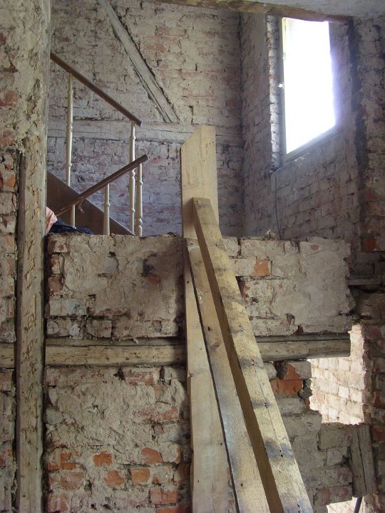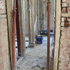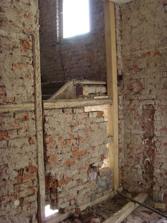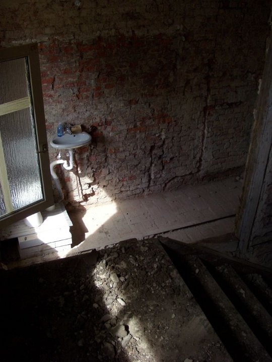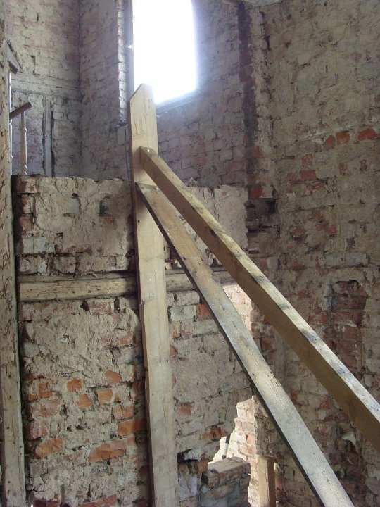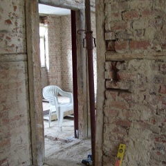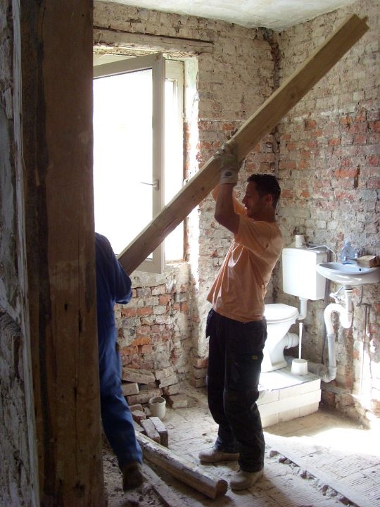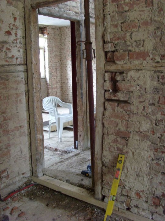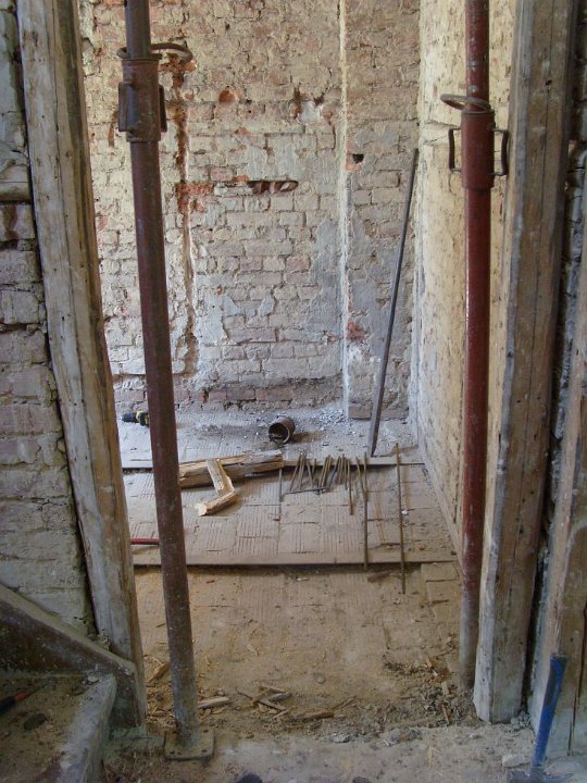 Alles abgespriest, nun wird auch noch der durchgegammelte Balken unter der Tür ausgetauscht.