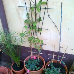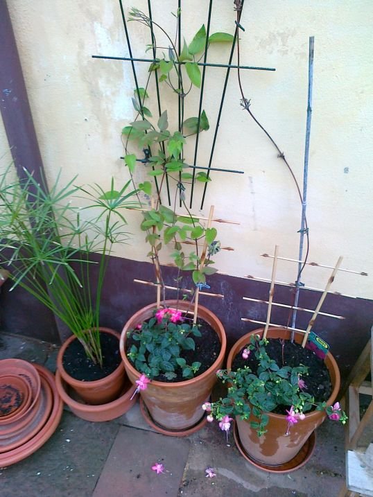 6 Die Clematis links konnte sich bereits mit dem neuen Standort anfreunden, die rechts schwächelt leider. |