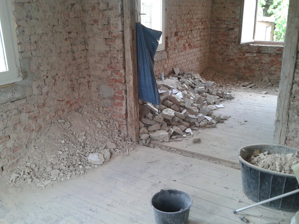 15 Die letzte Lehmwandlücke im Haus wurde geschlossen. |