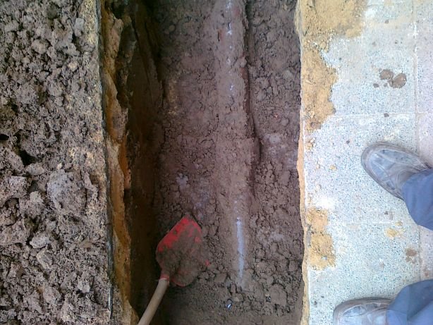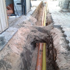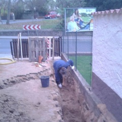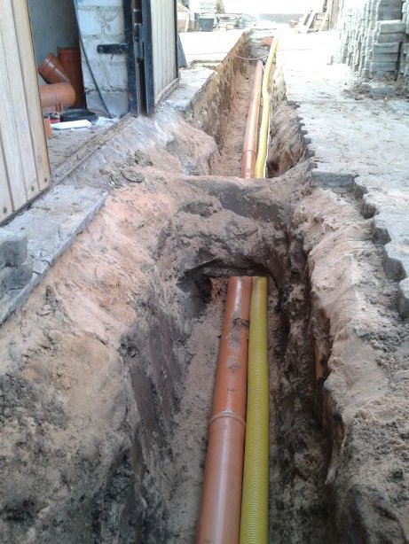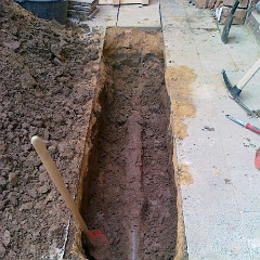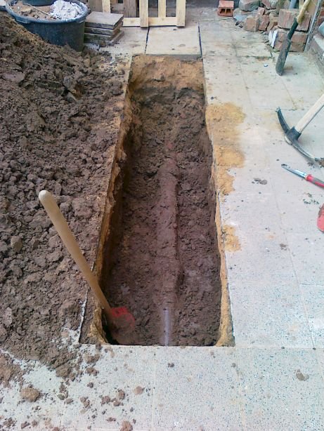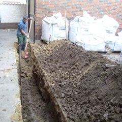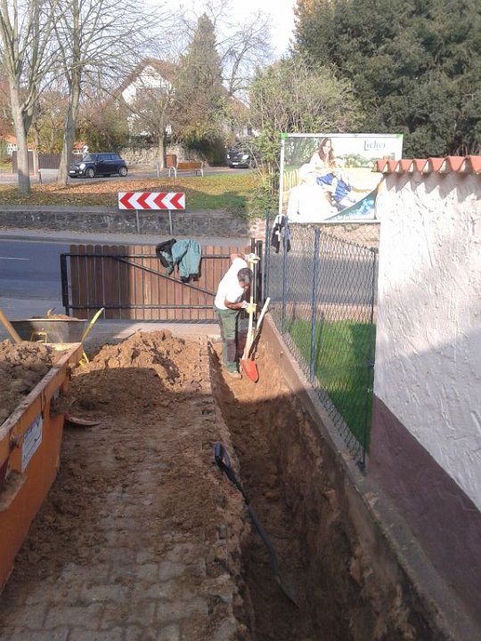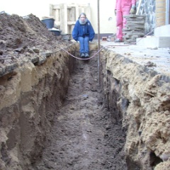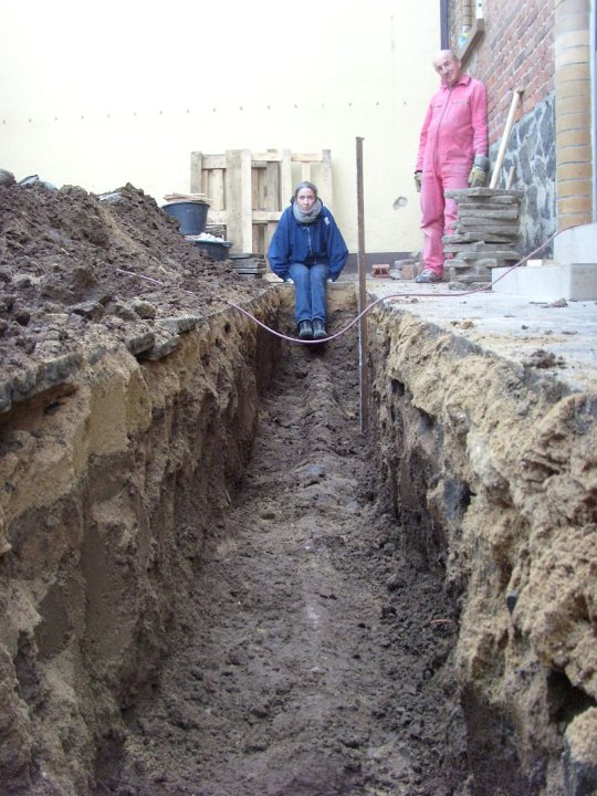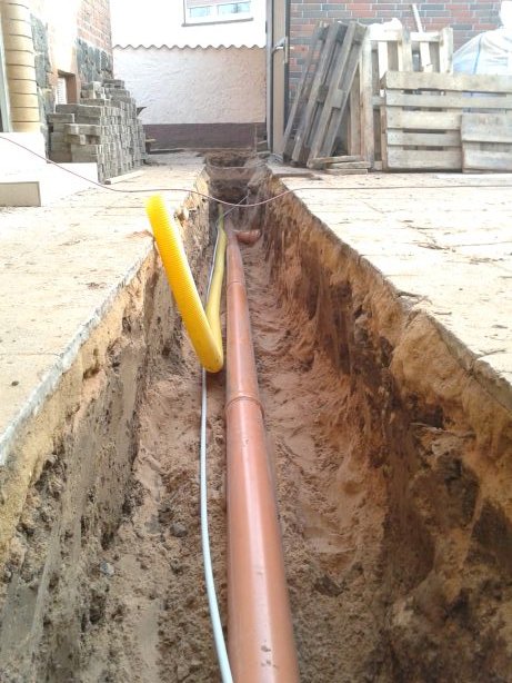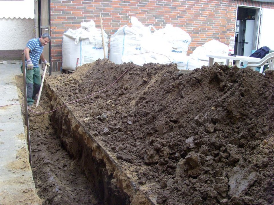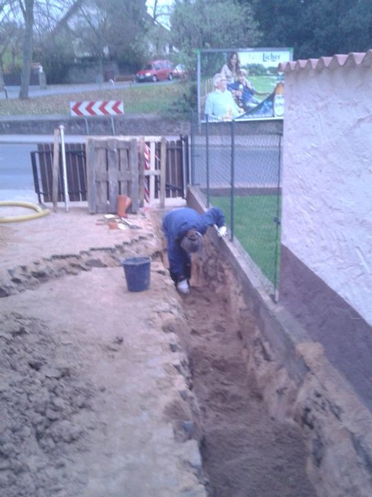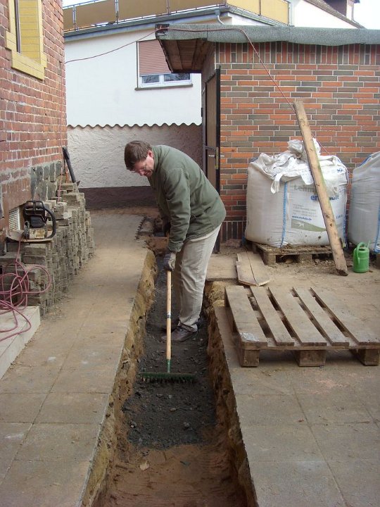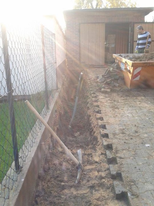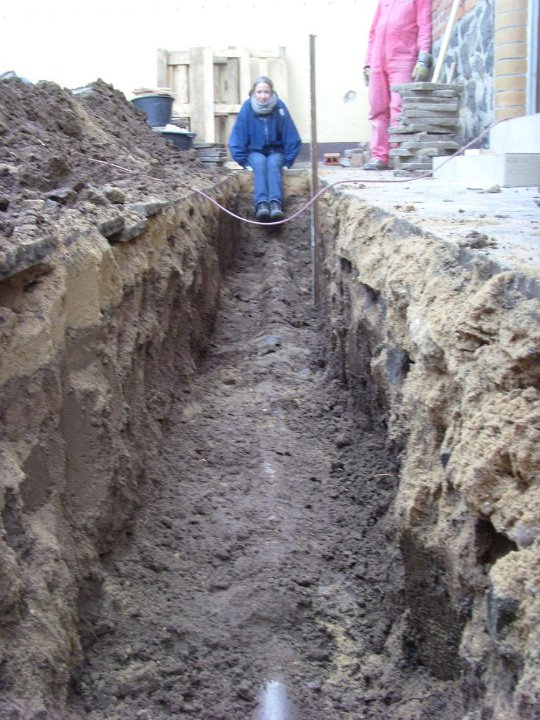 58 Erdstromkabel für die Garage und eine Drainage dazu, fast fertig. |