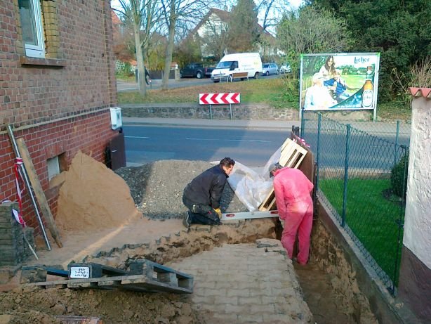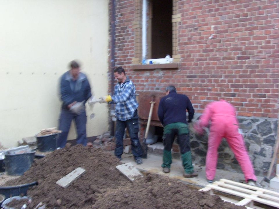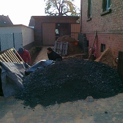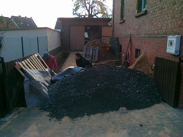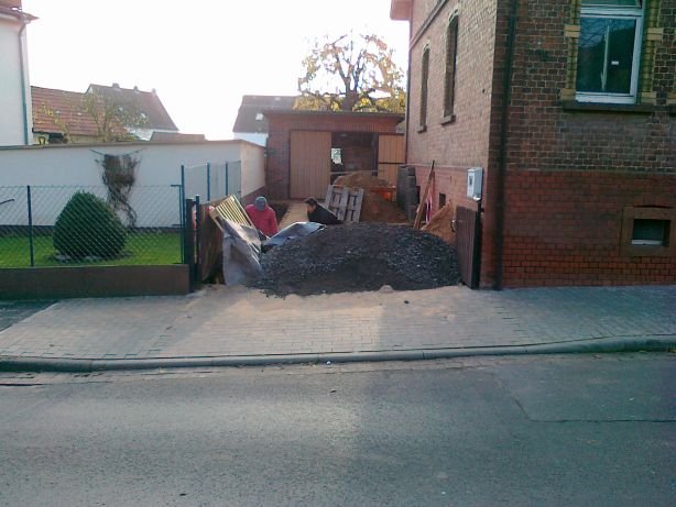 63 Auch aus der Einfahrt wird die stinkende Erde abgefahren. |