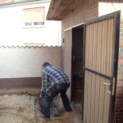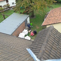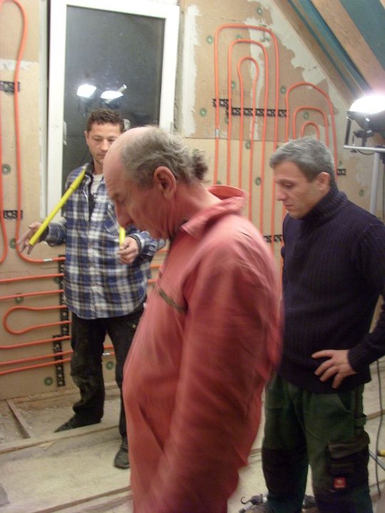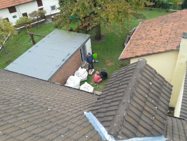 16 Elvir war nochmal auf dem Dach um den Kamin zu kontrollieren, während Rainer und Savas unter Alexanders Aufsicht irgendetwas zusammenschweißten. |