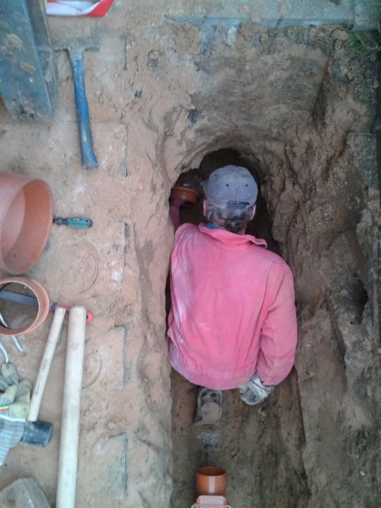 49 Die alten undichten Tonrohre werden gleich mit entsorgt. |