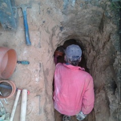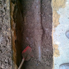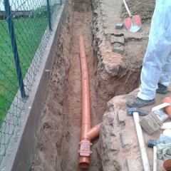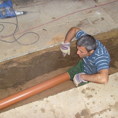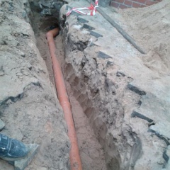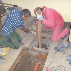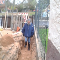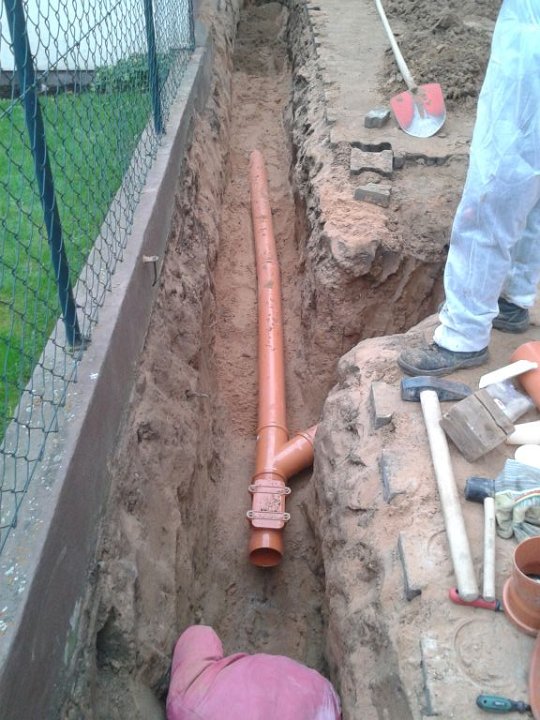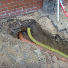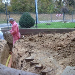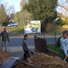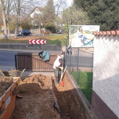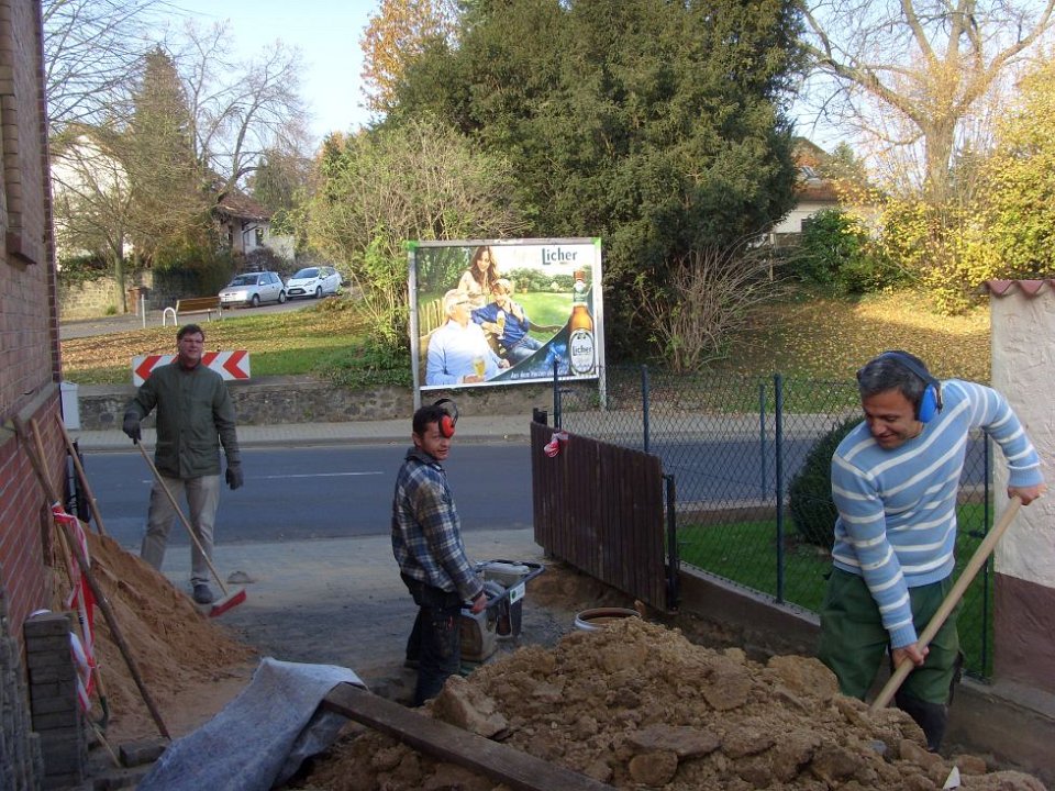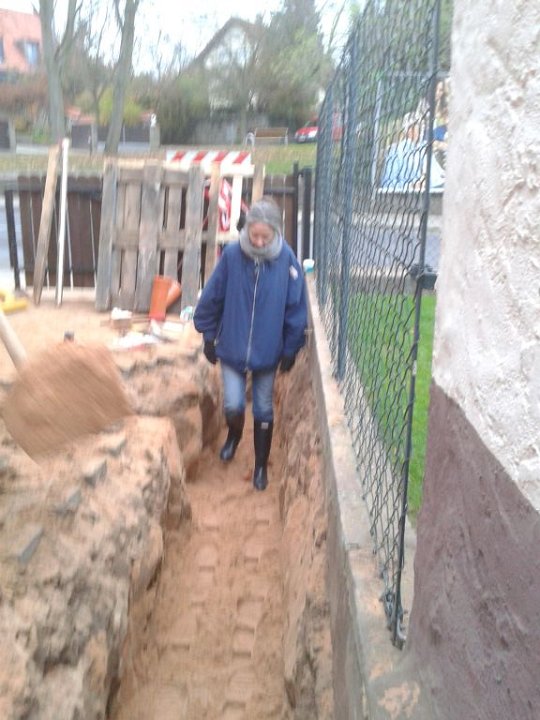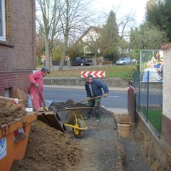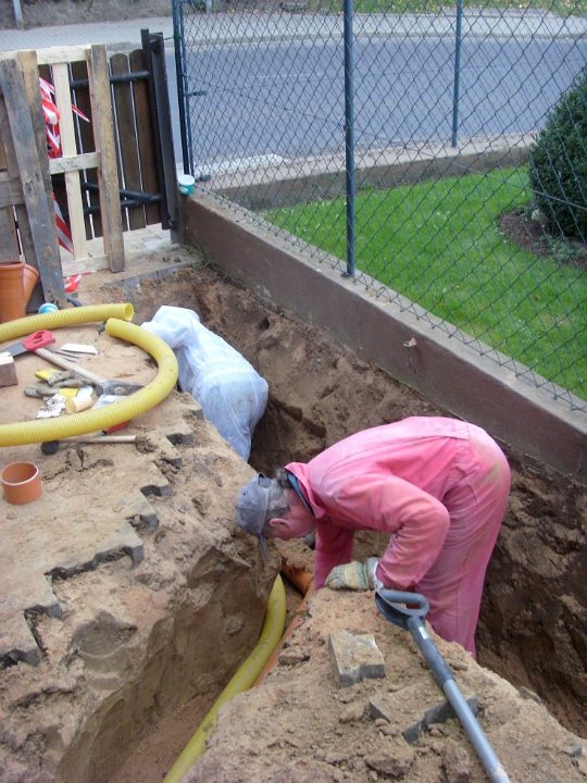 70 Rainer kontrolliert noch mal den Anschluß an den letzten Meter auf unserem Grundstück. |