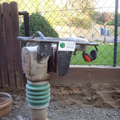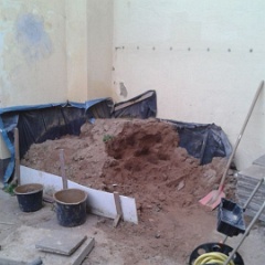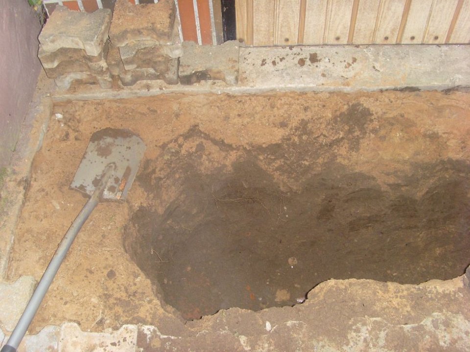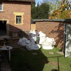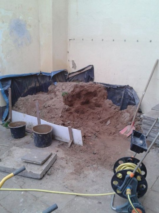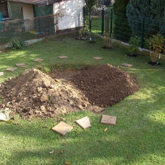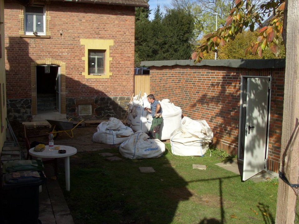 35 Der ehemalige Plastikpool wird jetzt auch noch in Rasen umgenutzt, Schutt raus, Erde rein. |