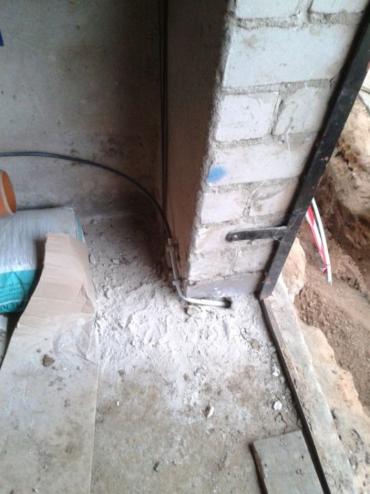 74 Die neue Stromleitung in die Garage. |