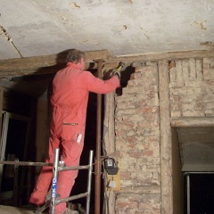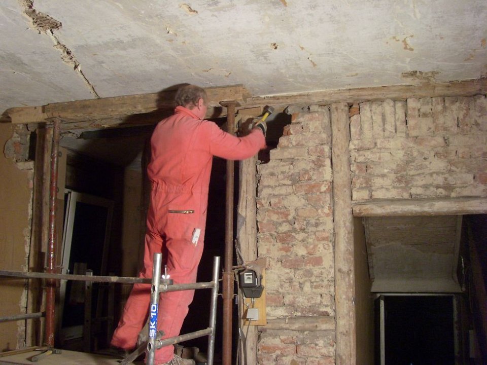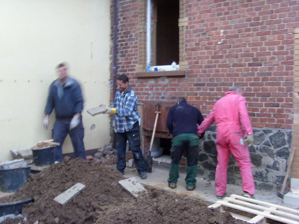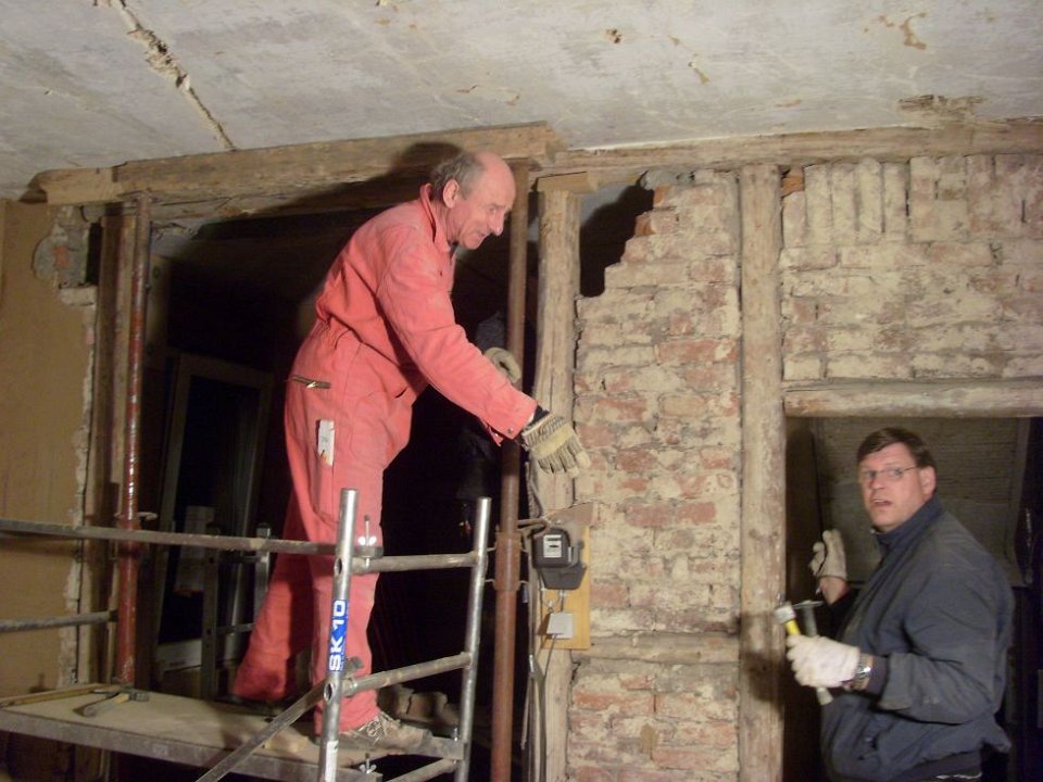 9 ... und es werden noch ein paar lose Mauersteine entfernt. |