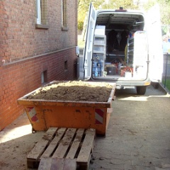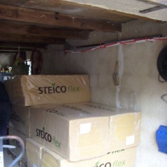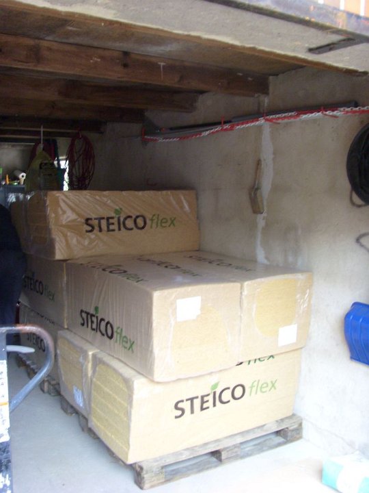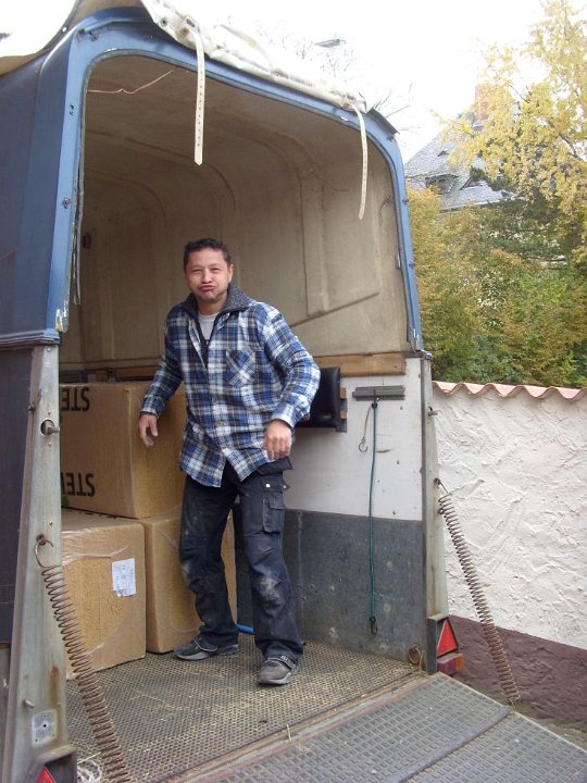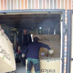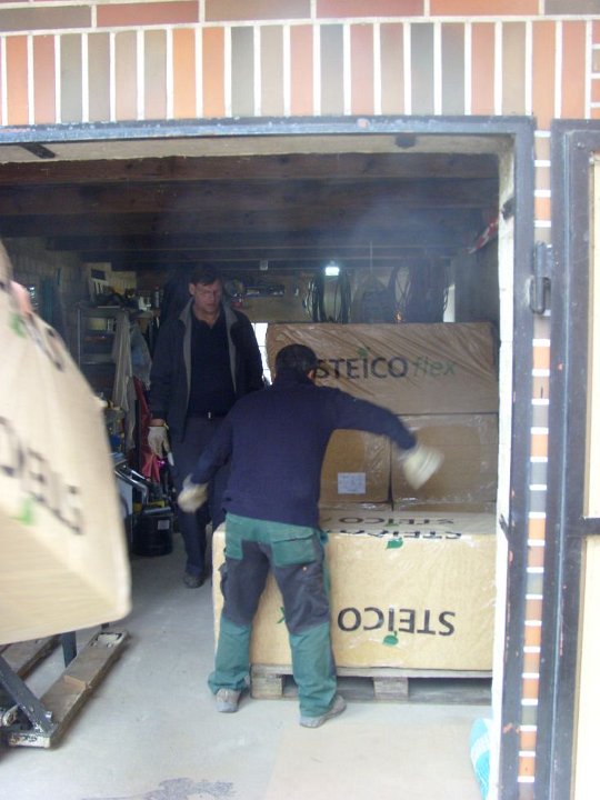 11 Elvir beim Abladen der Dachschrägen-Dämmung. |