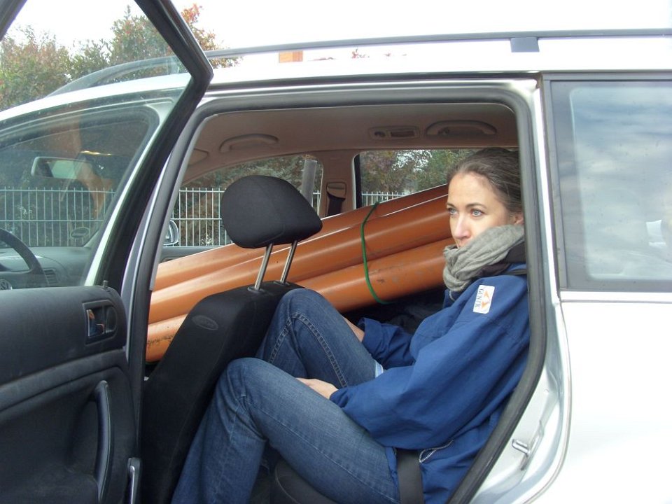 19 Alexandra mit 18 Metern KG-Rohr im Auto. |