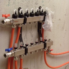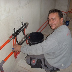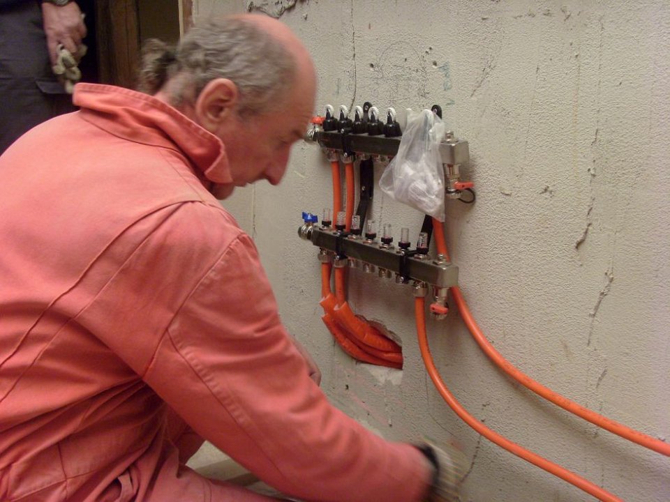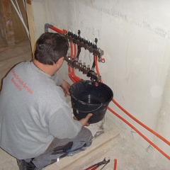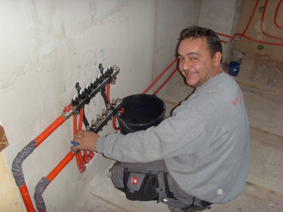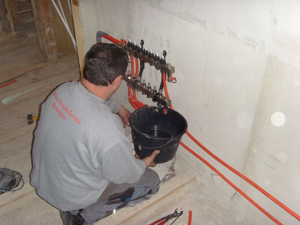 41 Drei von insgesamt neun Heizkreisläufen an der Wand konnten bereits gefüllt und geprüft werden. |