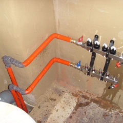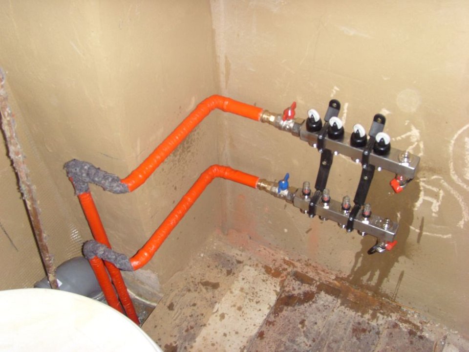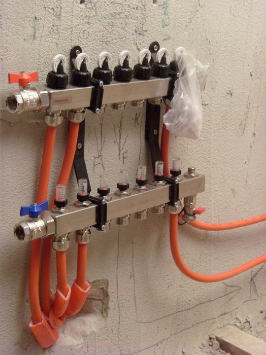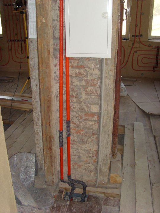 39 Die Zuleitungen zum oberen Heizverteiler. |