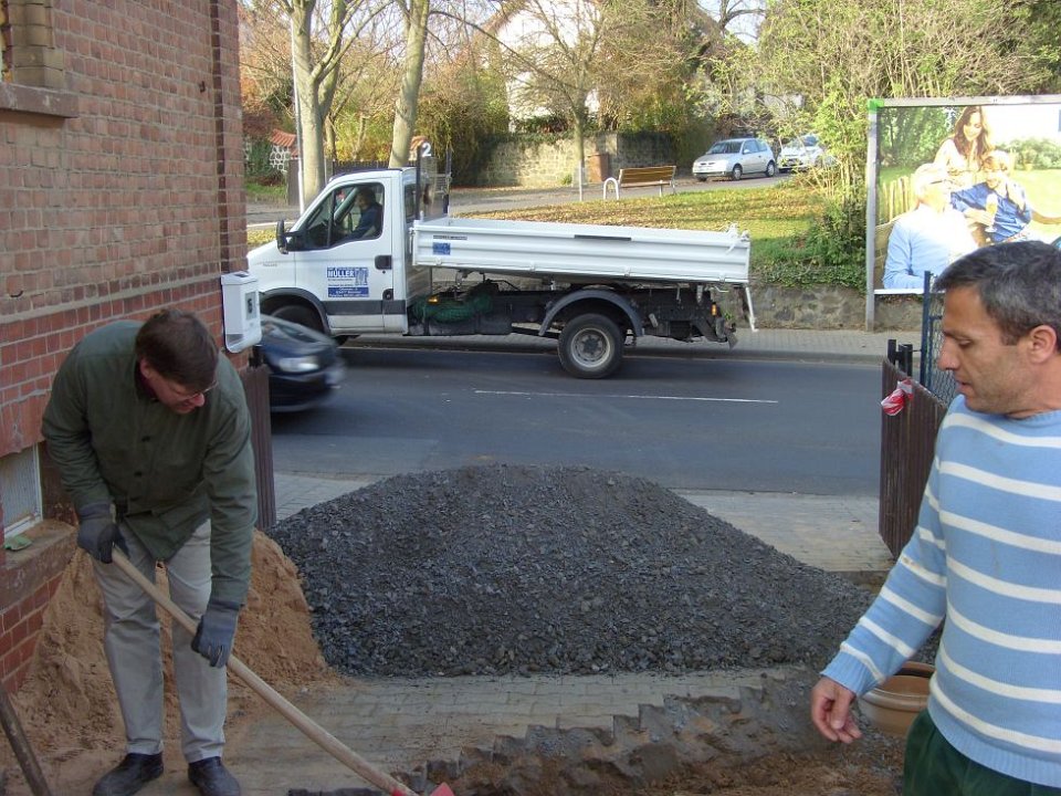 80 Nach Sand kommt Schotter, Alexander hat vor gefühlten 100 Jahren mal Wegebau im Internat geübt. |