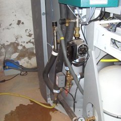 47 Die Kondensatpumpe, leider ein muss, da der DACHS SE zu tief liegt (ging aber nicht anders). |