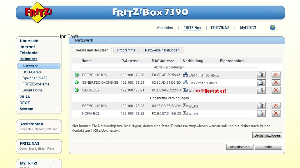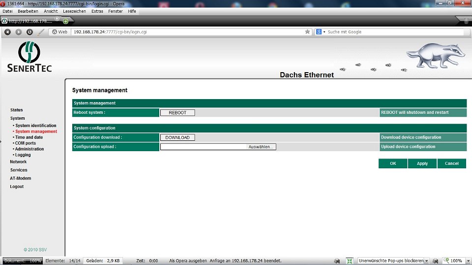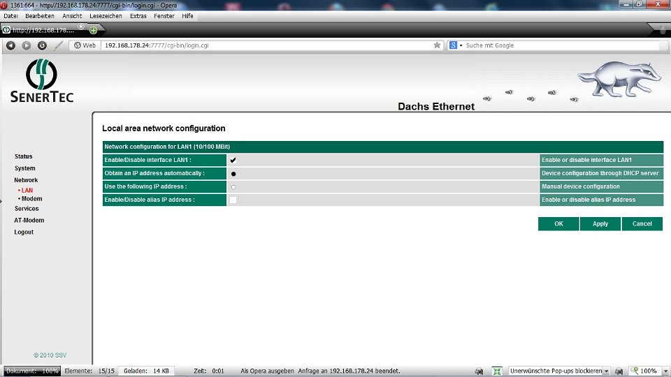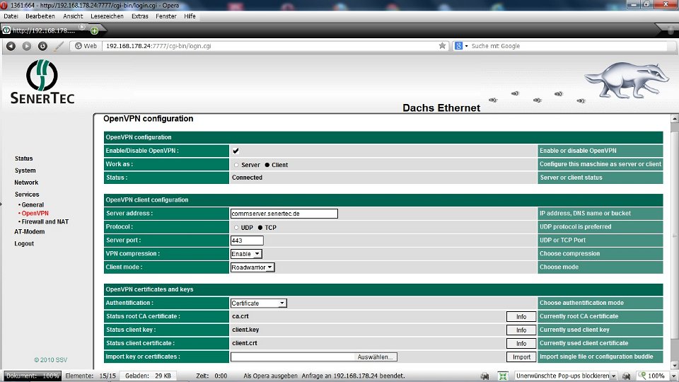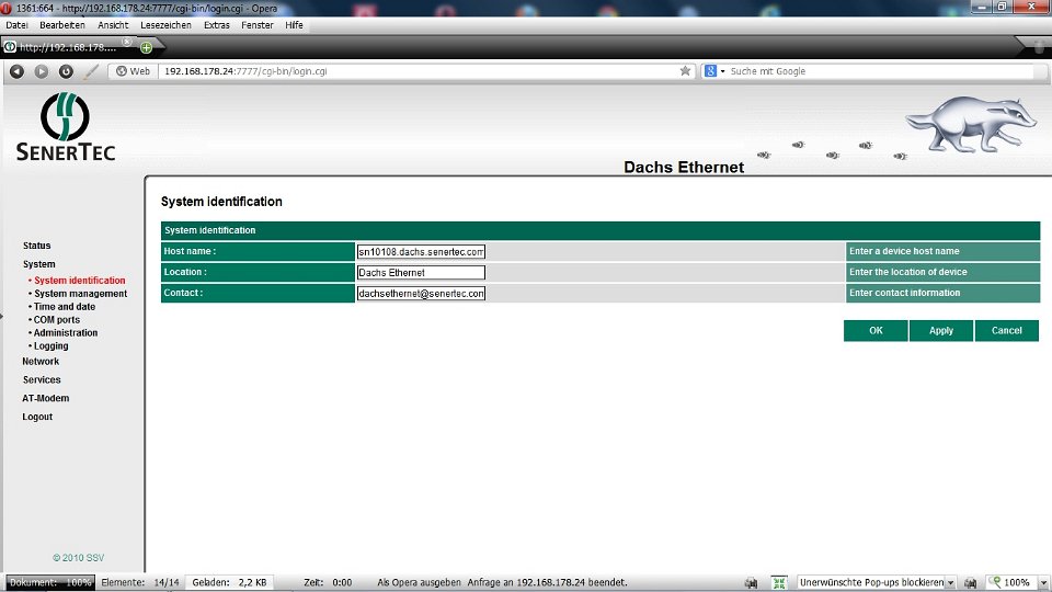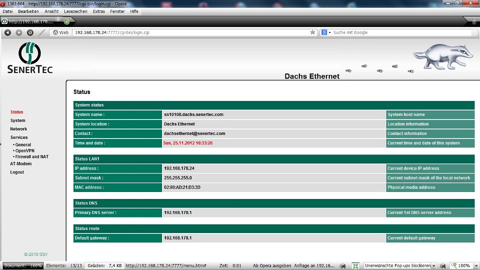 Unser DACHS SE hängt jetzt im Netzwerk, wurde auch gleich erkannt.